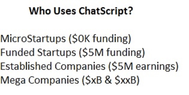 A: ChatScript is a general purpose natural language engine we developed, capable of being used in many ways. You only see it powering conversational characters where the goal is primarily entertainment. But the world is moving to a "conversational" user interface where you operate your appliances and computers via voice and not via mouse and keyboard.